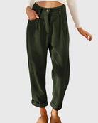 The June Tapered Pants are where casual comfort meets refined style. Designed with a flattering high waist, relaxed leg, and softly tapered ankle, these pants offer a perfect blend of structure and ease. The subtle corduroy-inspired texture and turned-up hems give them a vintage yet modern charm — ideal for both laid-back days and polished looks.