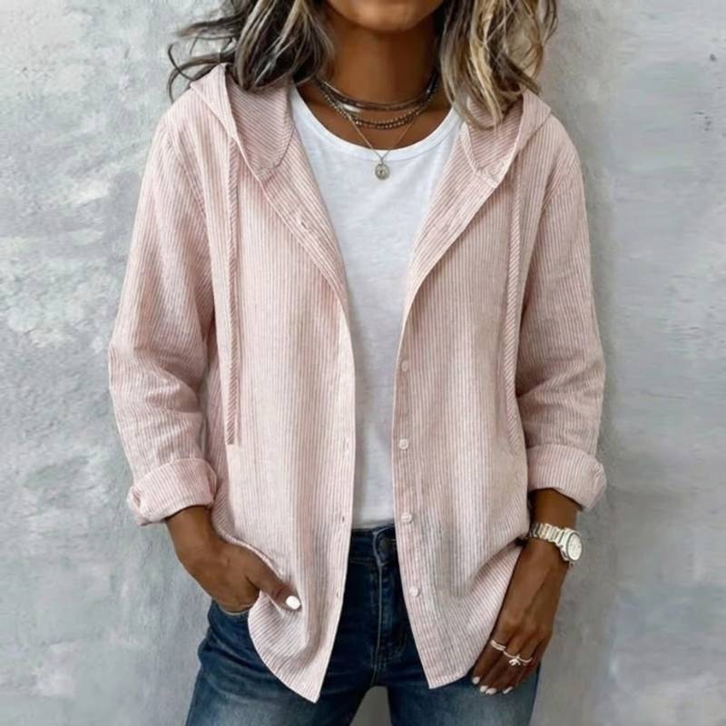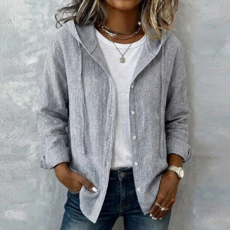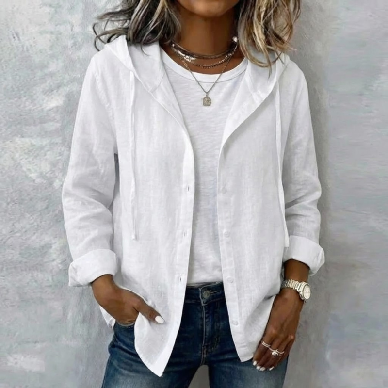 The Natalie Relaxed Hooded Blouse blends comfort and effortless style, a dependable layering piece for women who appreciate relaxed elegance in everyday wear.